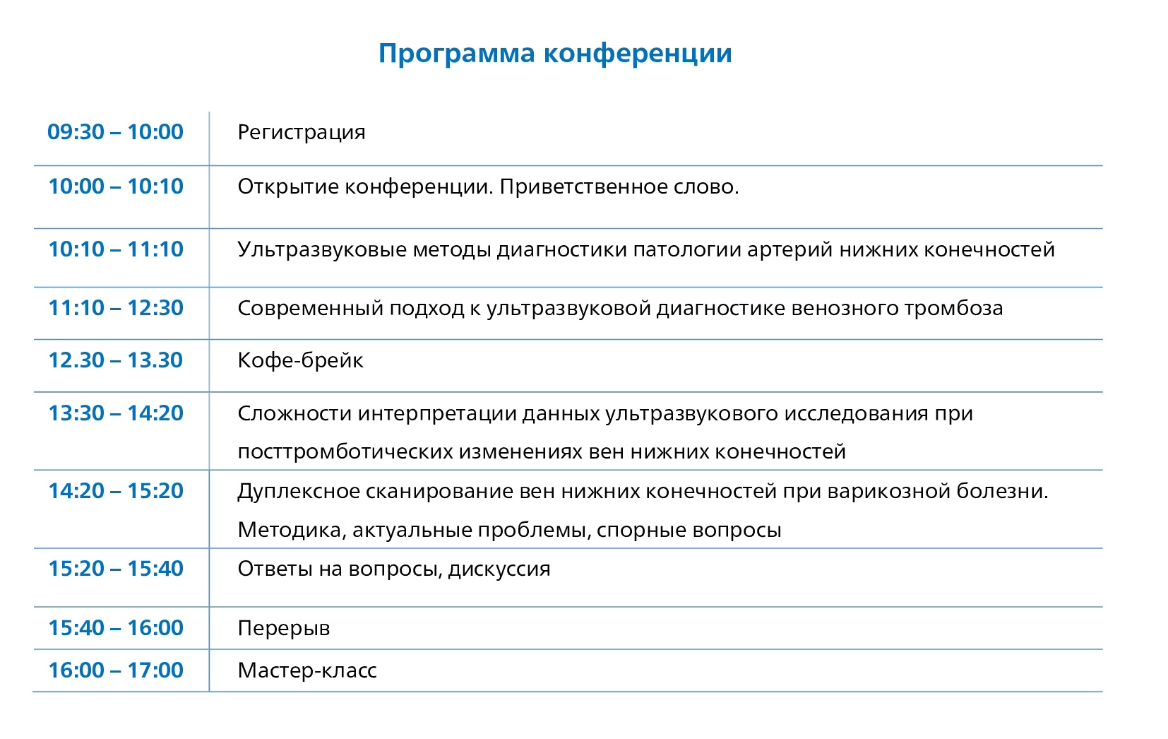 Данное событие будет особенно полезно для специалистов ультразвуковой диагностики стремящихся углубить свои знания и повысить квалификацию в области сосудистых заболеваний нижних конечностей.